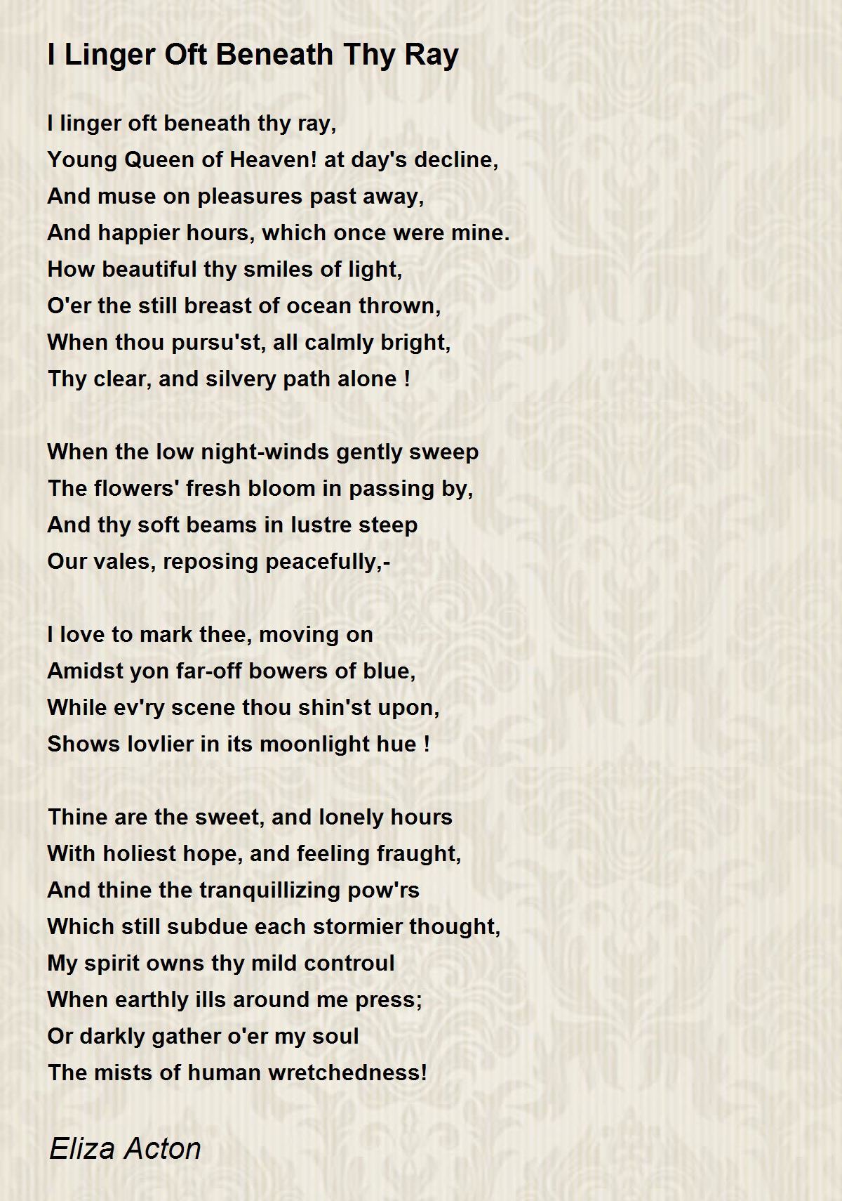 I linger oft beneath thy ray,