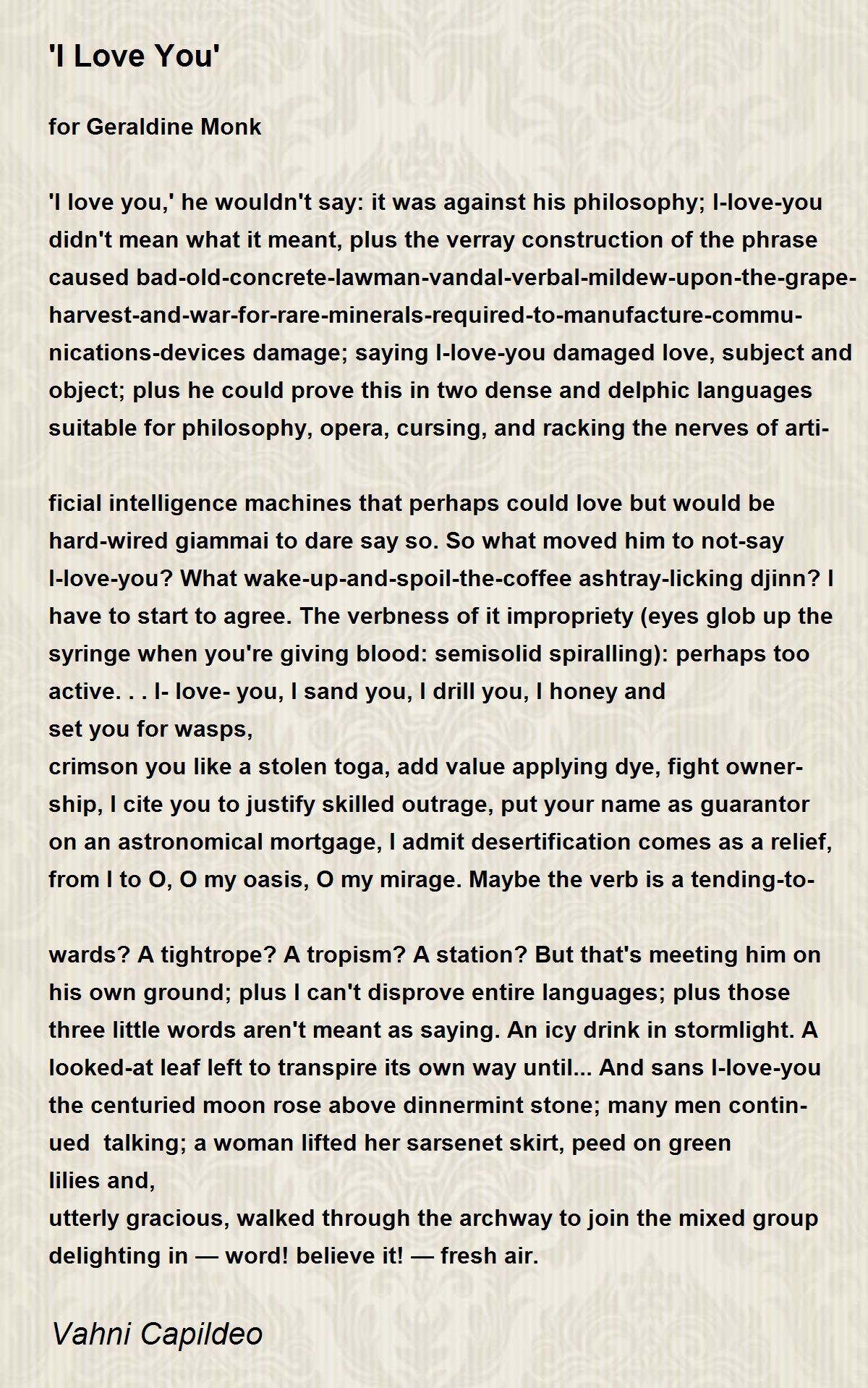 I-love-you? What wake-up-and-spoil-the-coffee ashtray-licking djinn? I
