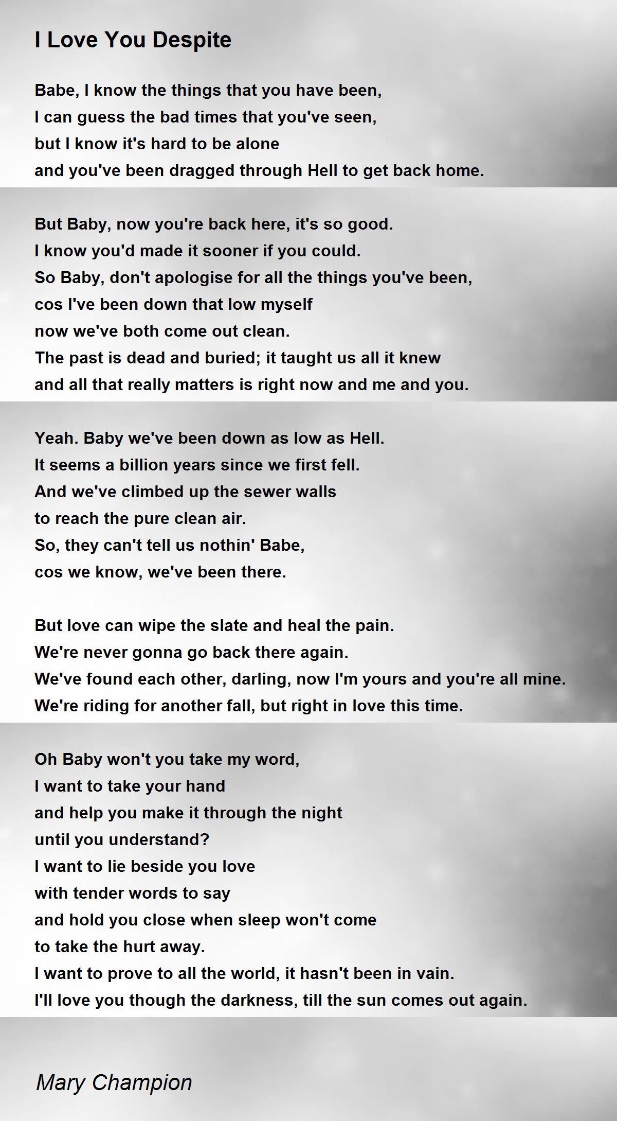 I'll love you though the darkness, till the sun comes out again.