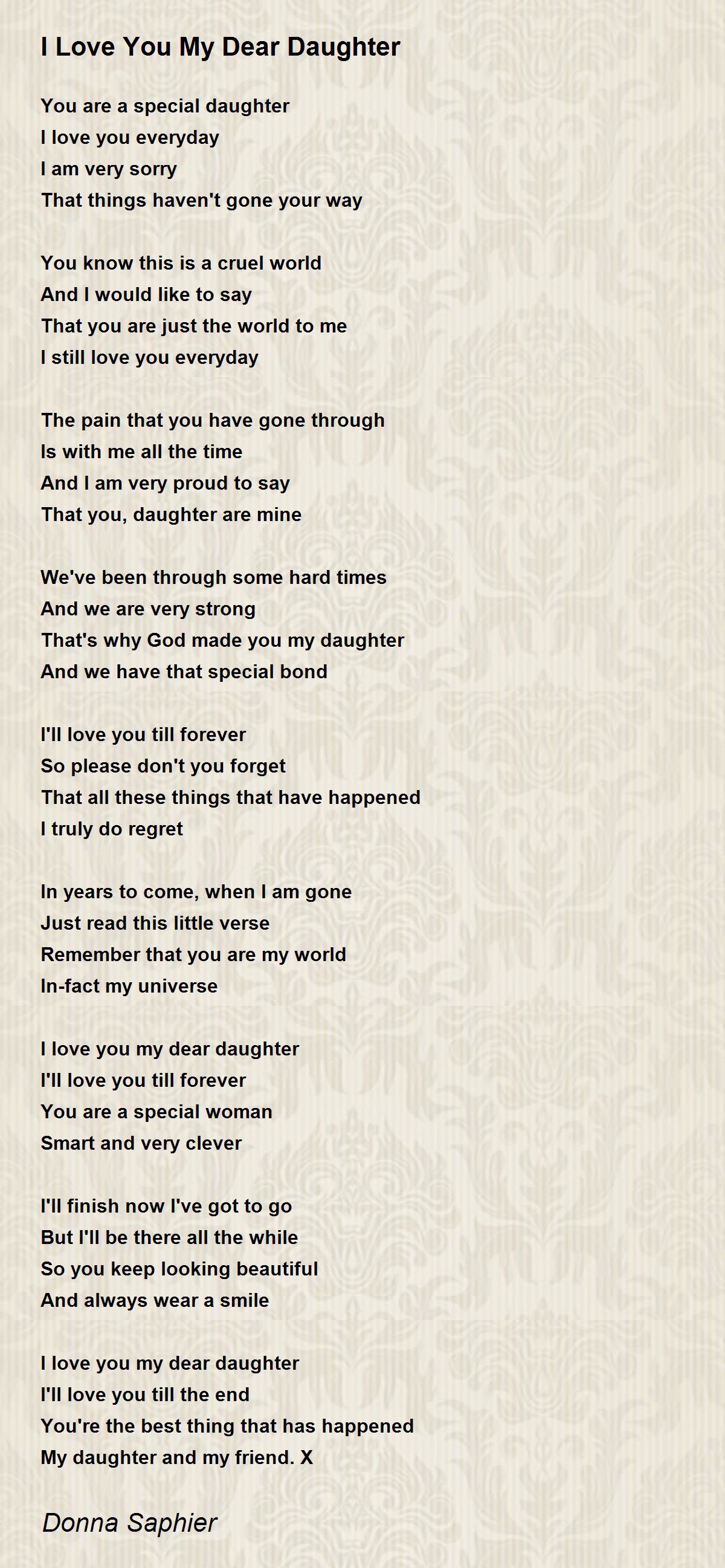 Great poem. Full of sentiments which only a loving mother can express to her daughter and providing moral support to her even during difficult times. Thanks.