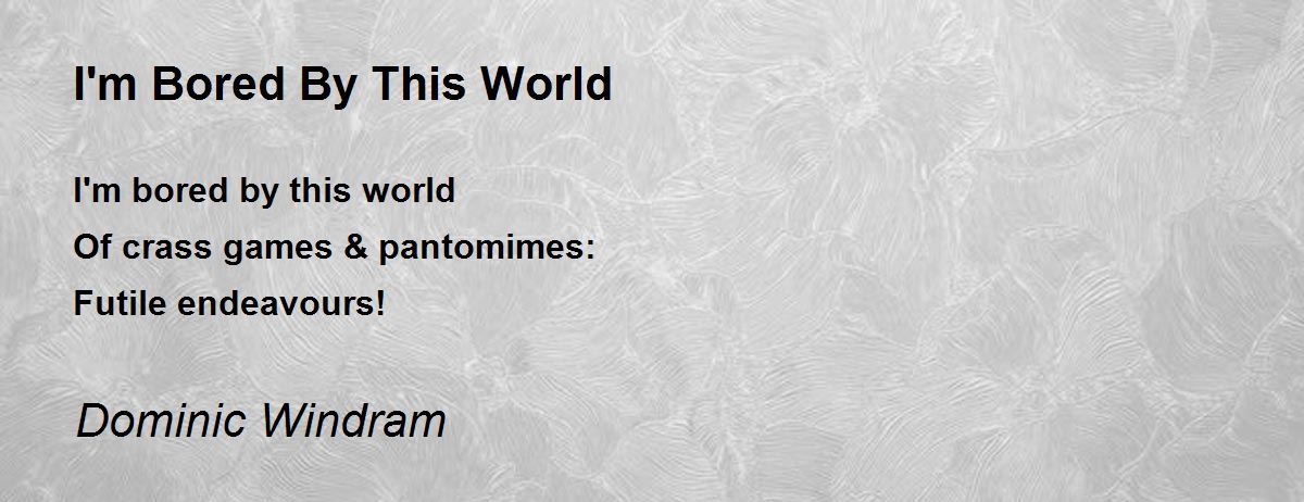 I'm bored by this world Of crass games & pantomimes: Futile endeavours!