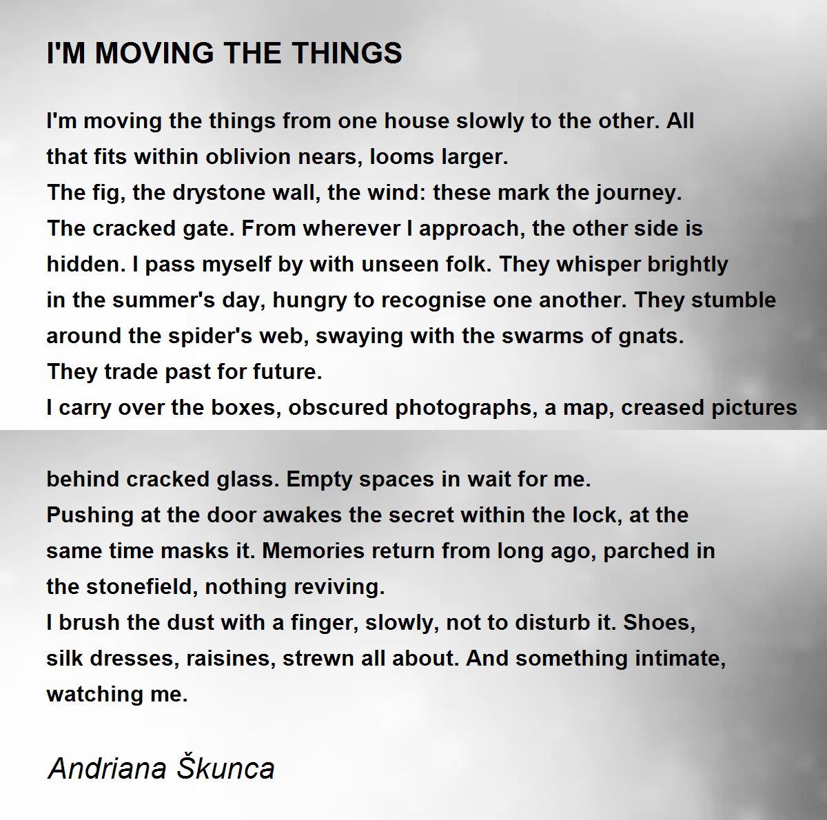 I'm moving the things from one house slowly to the other. All that fits within oblivion nears, looms larger.