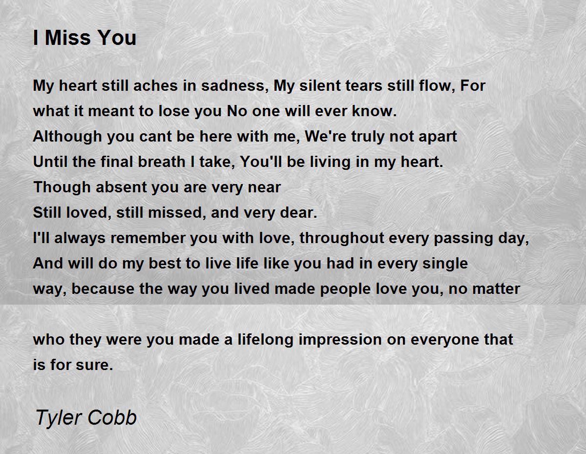 My heart still aches in sadness, My silent tears still flow, For what it meant to lose you No one will ever know.
