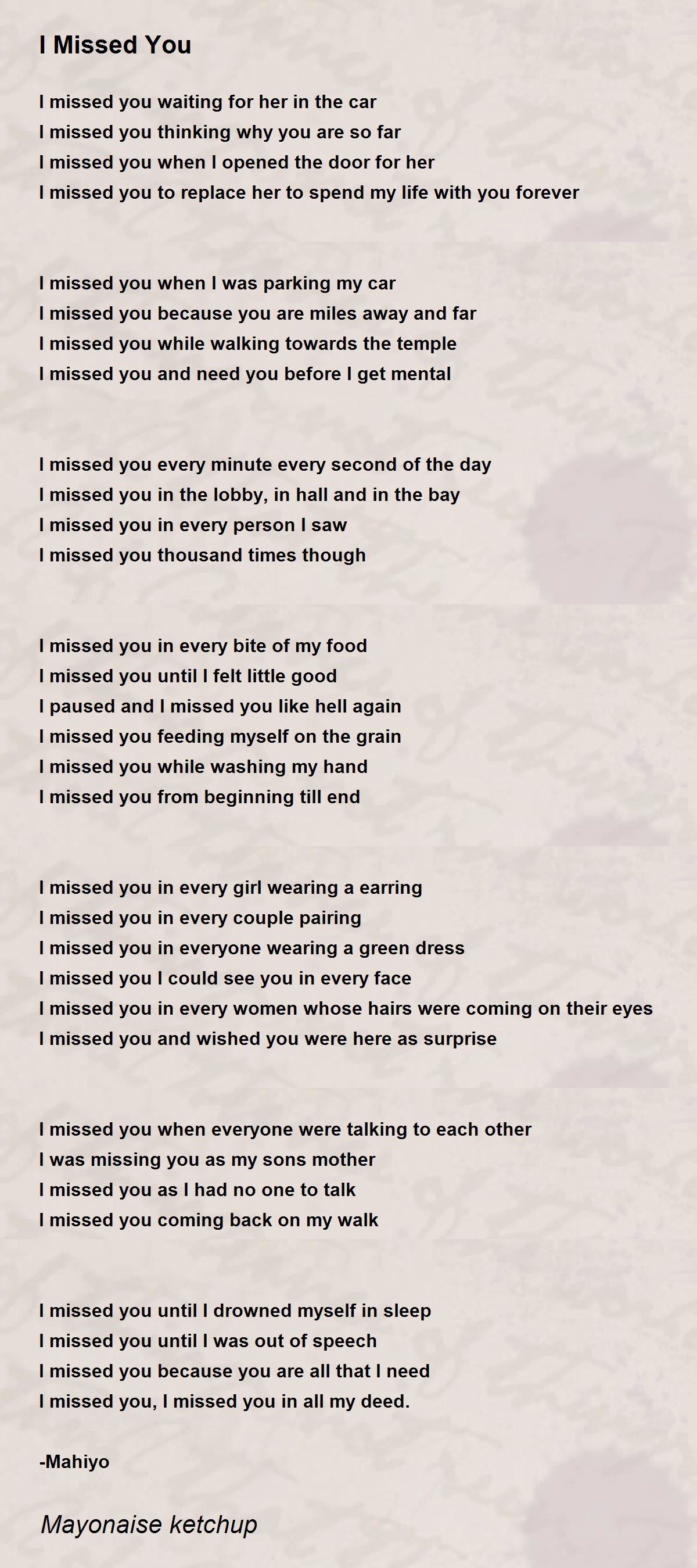 I missed you until I felt little good