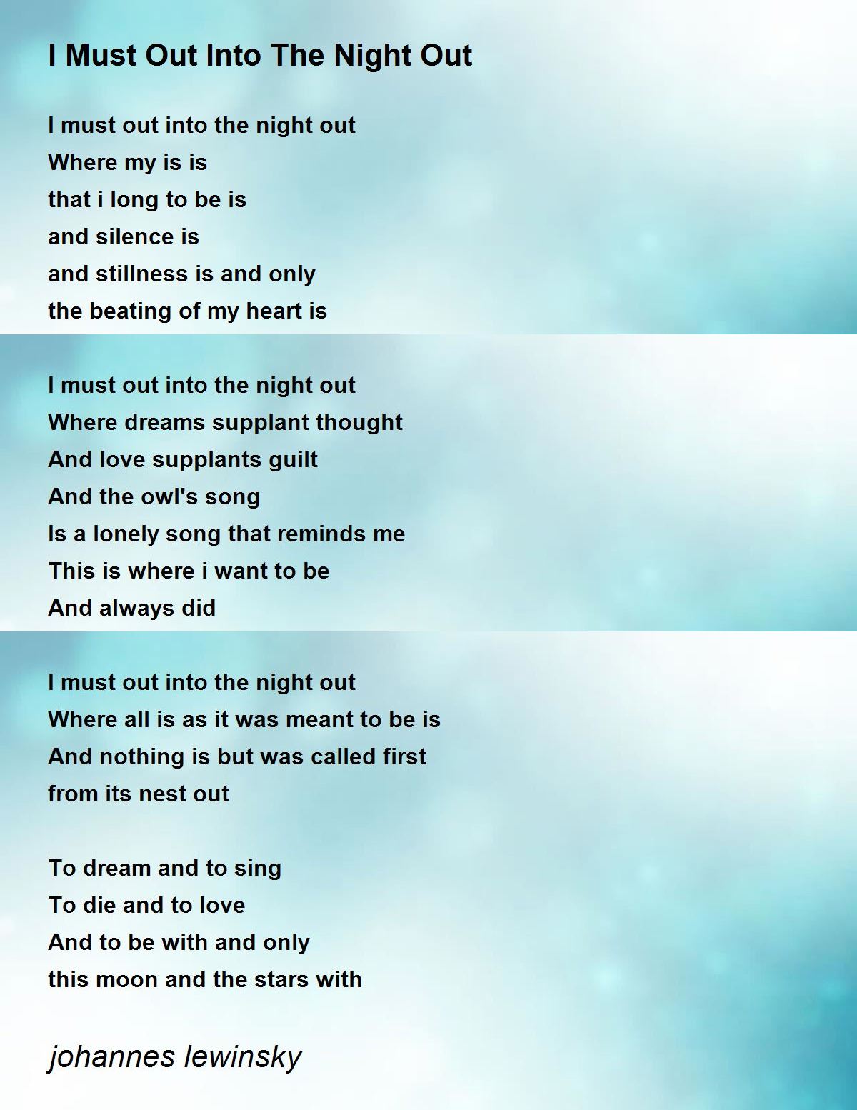 I must out into the night out