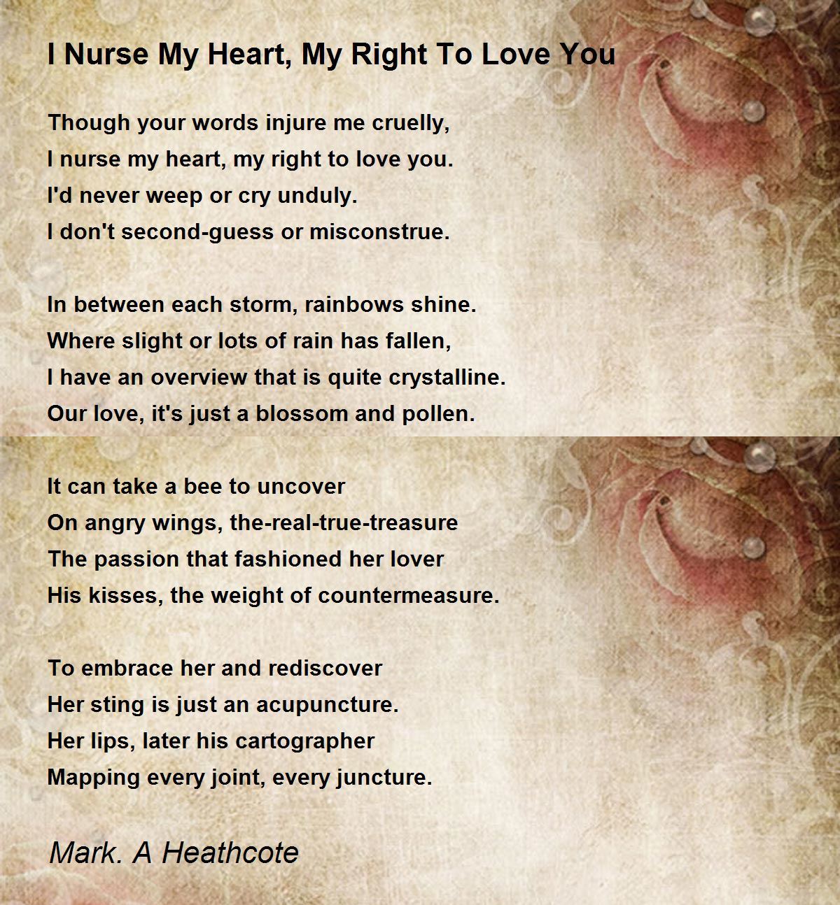 I nurse my heart, my right to love you.