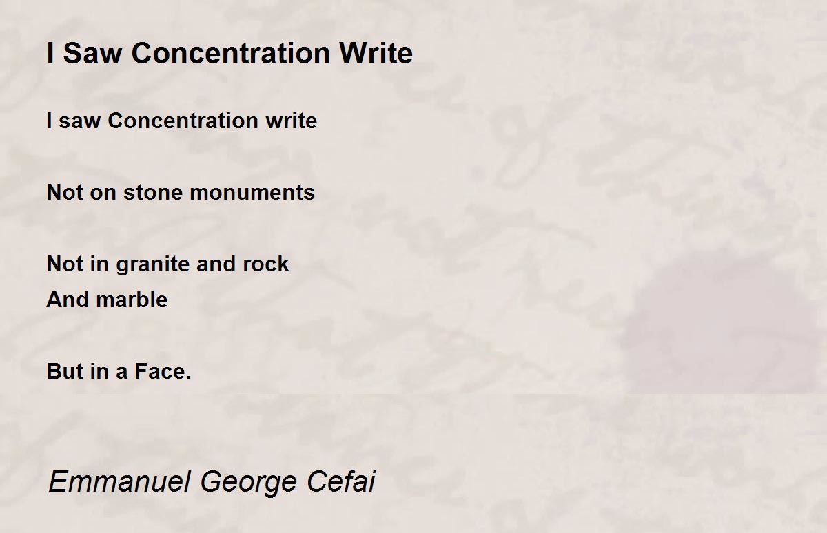 I saw Concentration write Not on stone monuments Not in granite and rock And marble But in a Face.