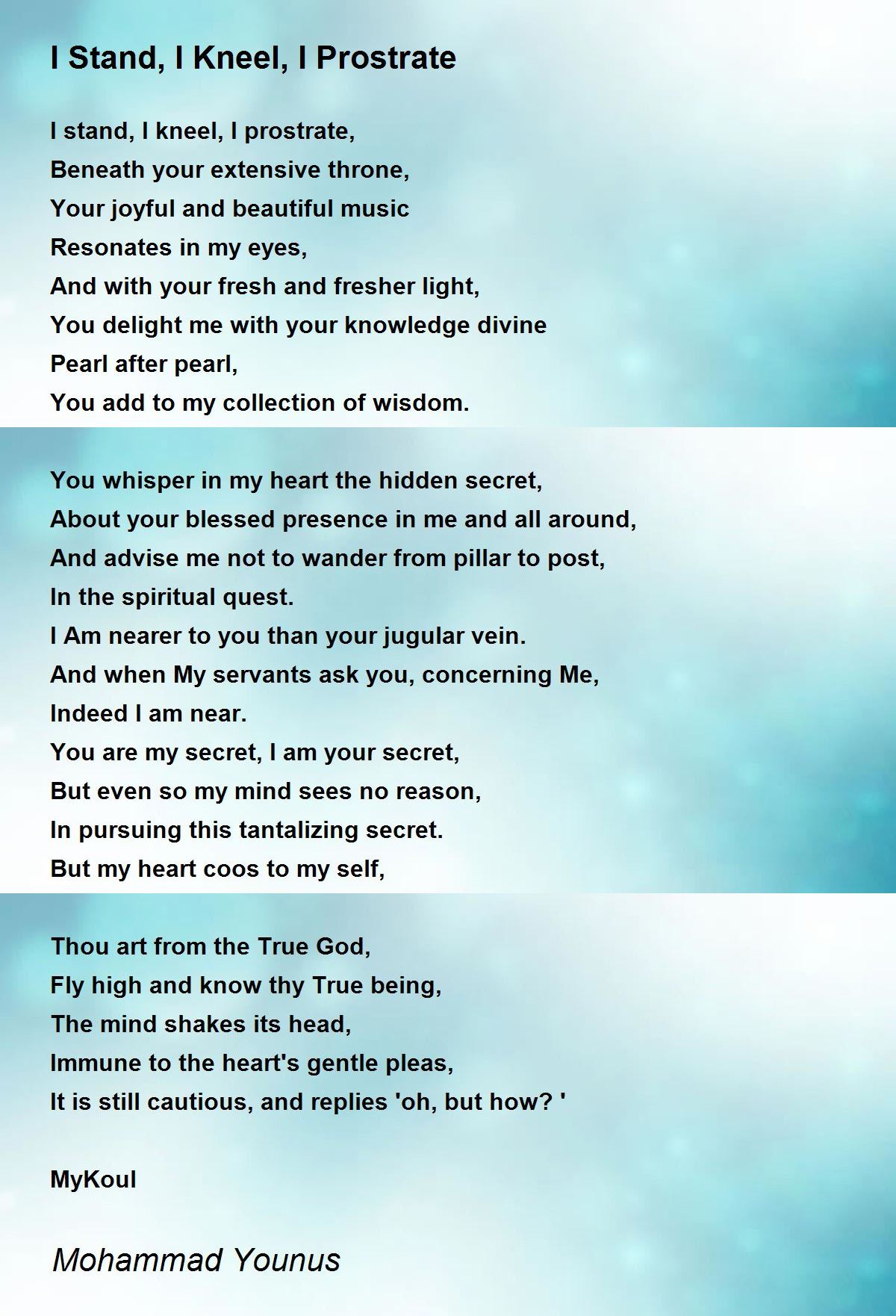 I stand, I kneel, I prostrate,