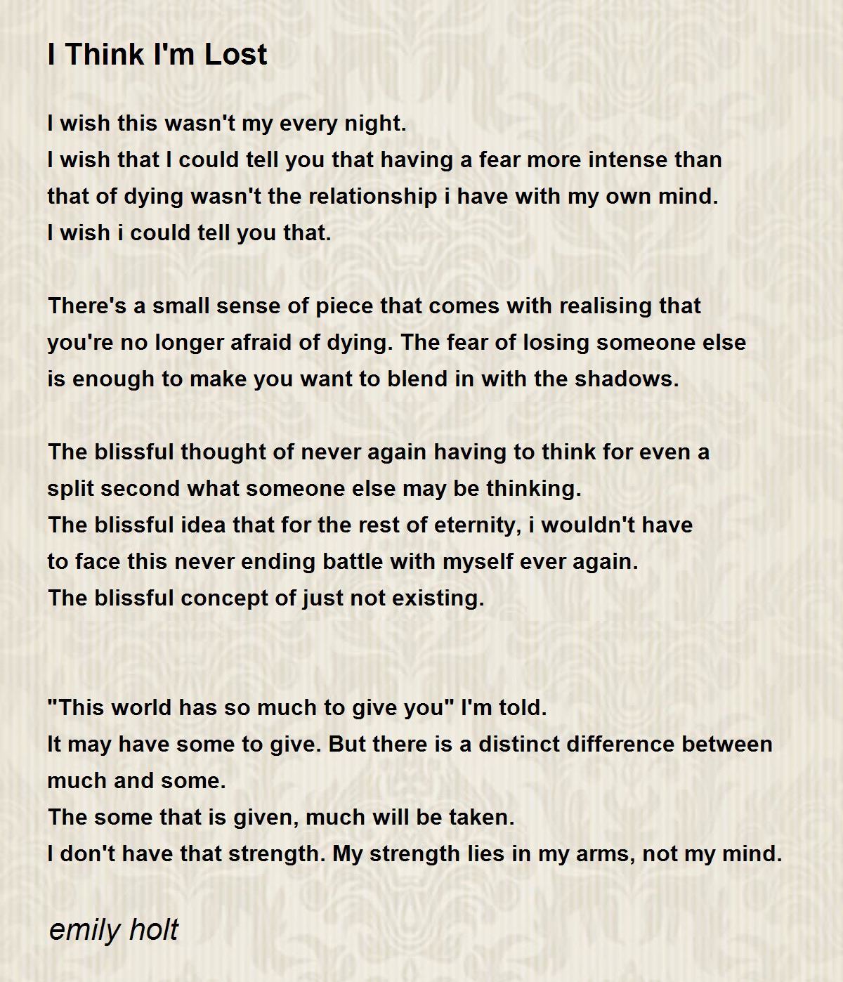 I wish that I could tell you that having a fear more intense than that of dying wasn't the relationship i have with my own mind. I wish i could tell you that.