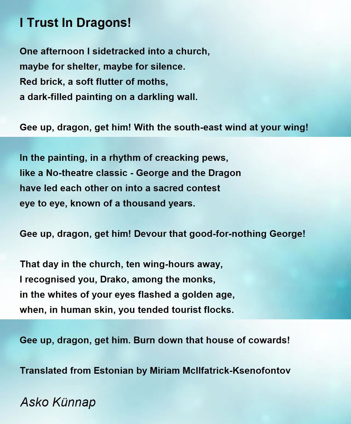Translated from Estonian by Miriam McIlfatrick-Ksenofontov