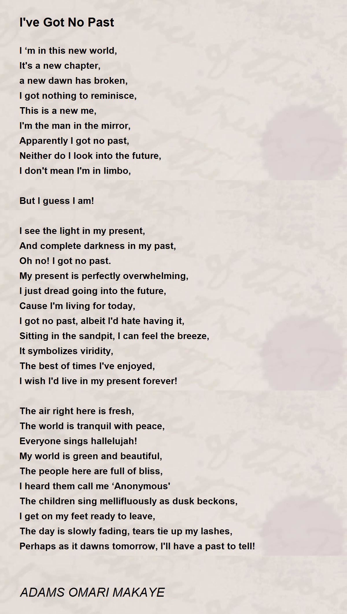 I got no past, albeit I'd hate having it,