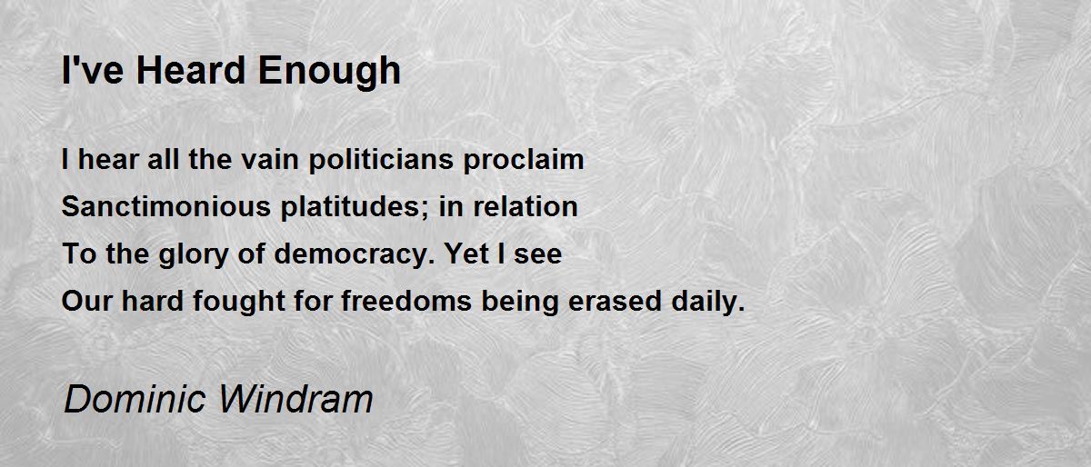 I hear all the vain politicians proclaim