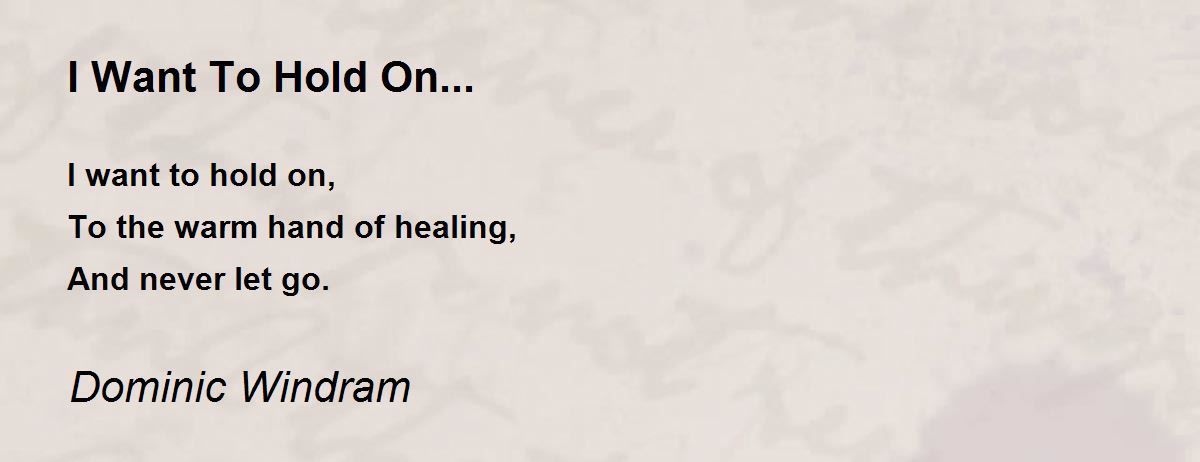 I want to hold on, To the warm hand of healing, And never let go.