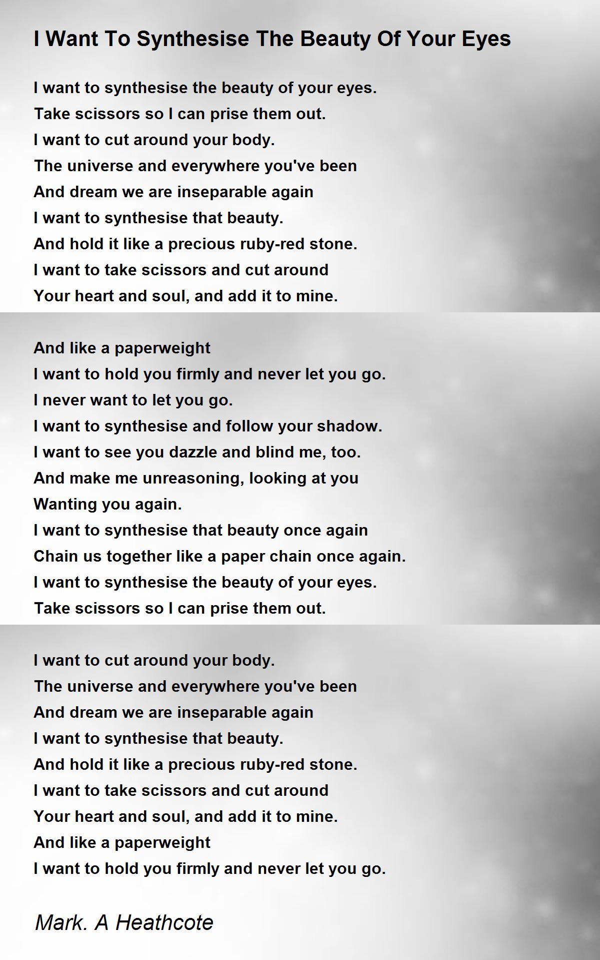 I want to synthesise the beauty of your eyes.