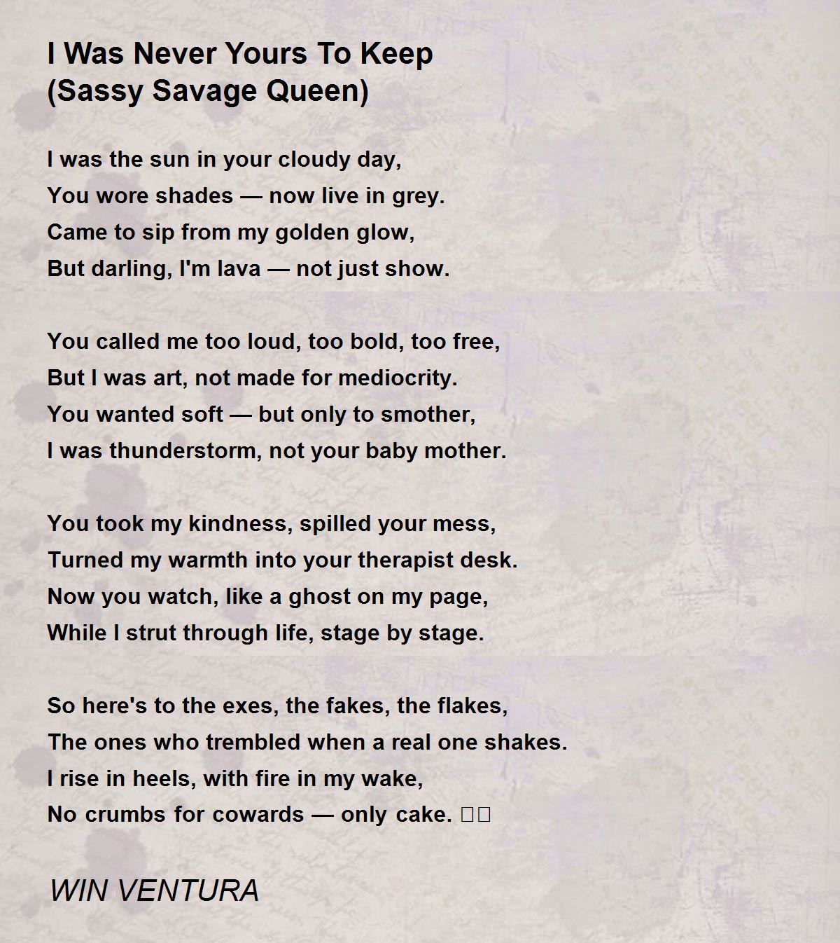 You took my kindness, spilled your mess,
