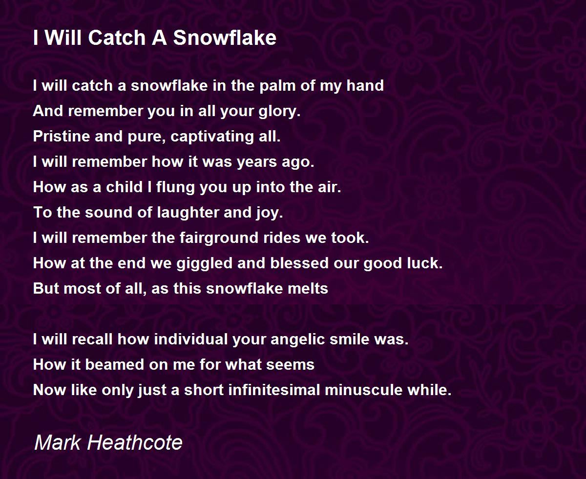 I will catch a snowflake in the palm of my hand