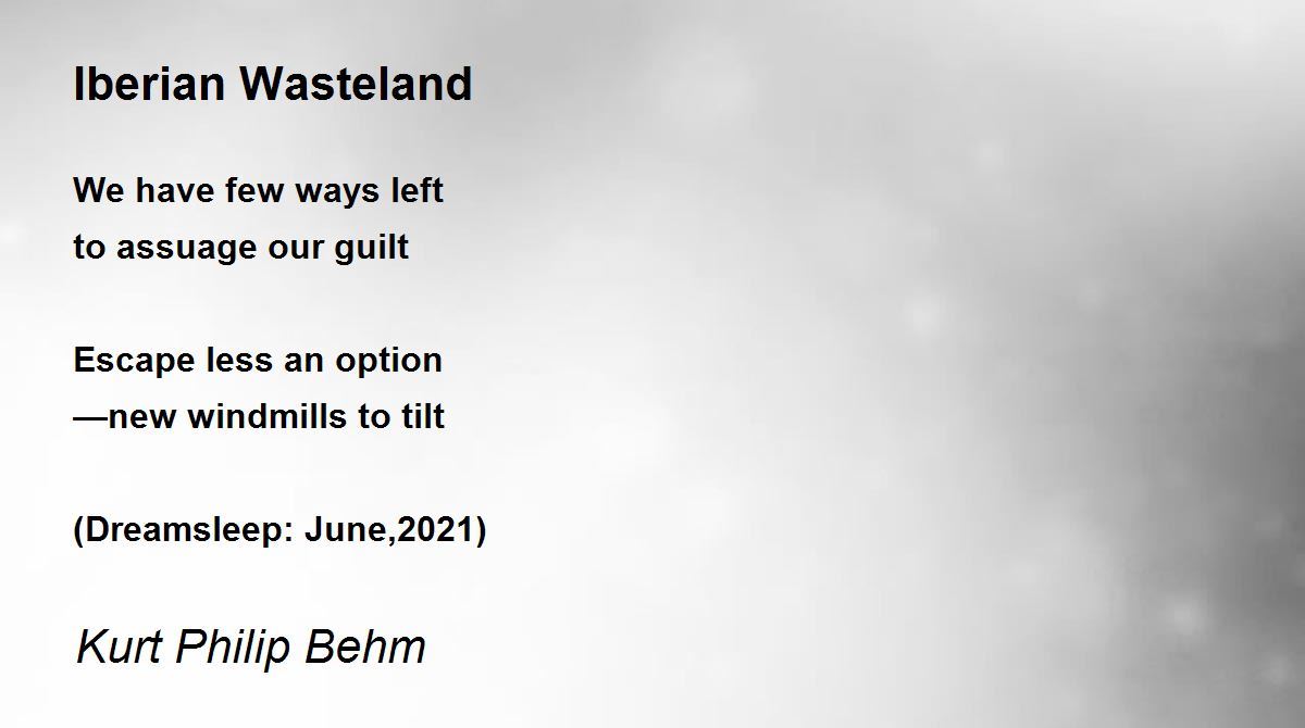 We have few ways left to assuage our guilt Escape less an option —new windmills to tilt (Dreamsleep: June,2021)