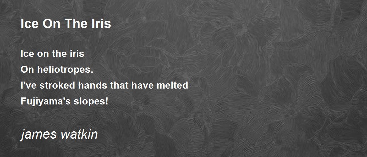Ice on the iris On heliotropes. I've stroked hands that have melted Fujiyama's slopes!