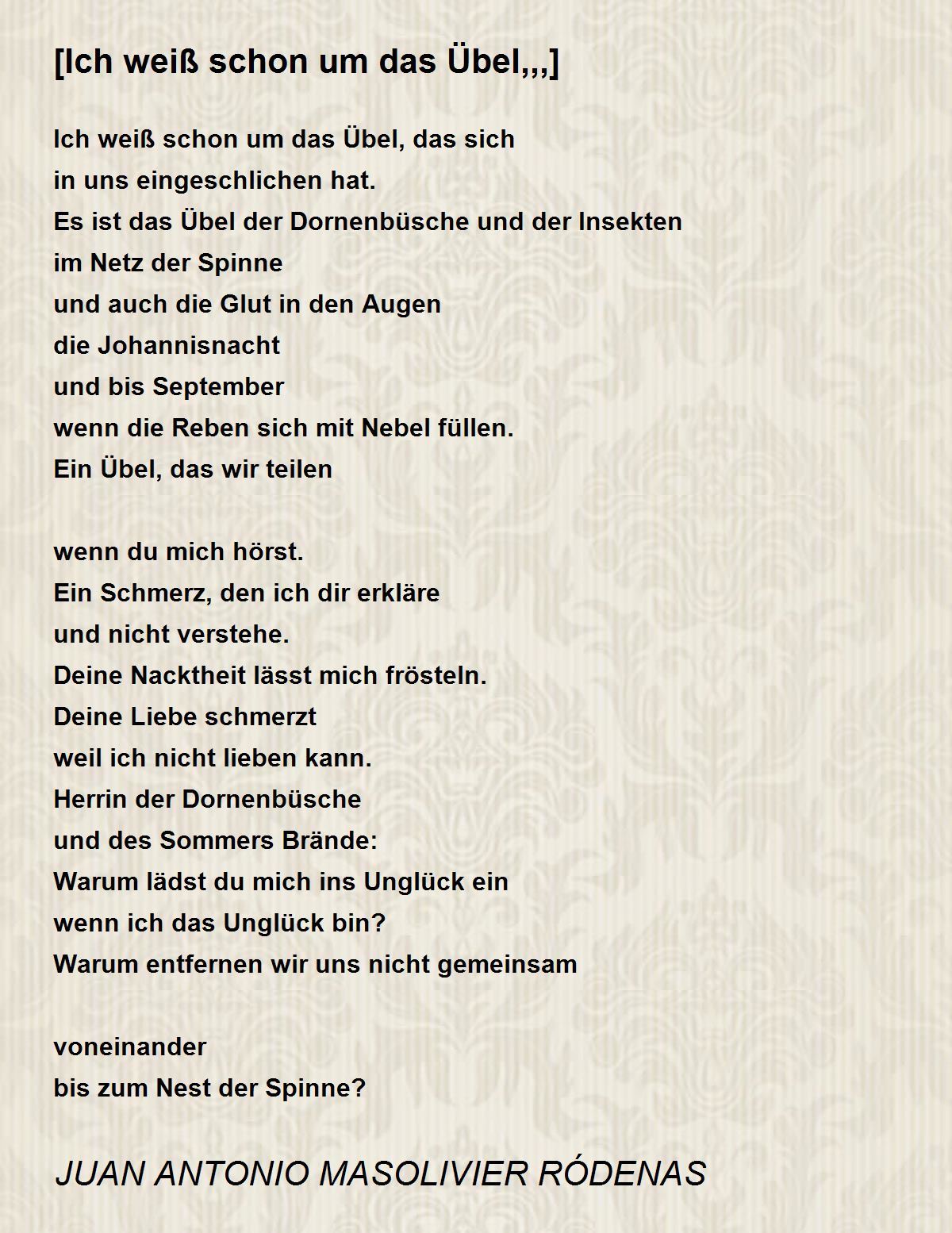 Ich weiß schon um das Übel, das sich