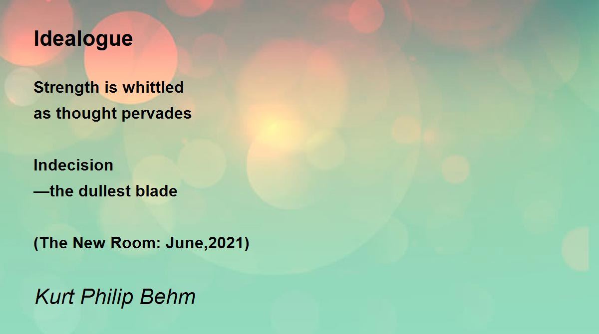 Strength is whittled as thought pervades Indecision —the dullest blade (The New Room: June,2021)