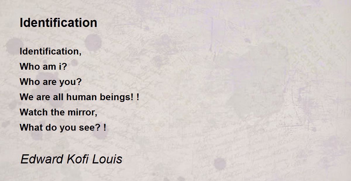 Identification, Who am i? Who are you? We are all human beings! ! Watch the mirror, What do you see? !