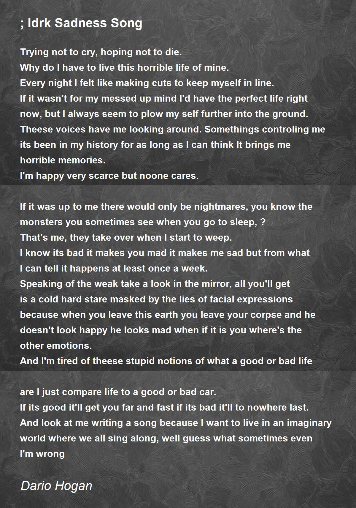 And I'm tired of theese stupid notions of what a good or bad life are I just compare life to a good or bad car.