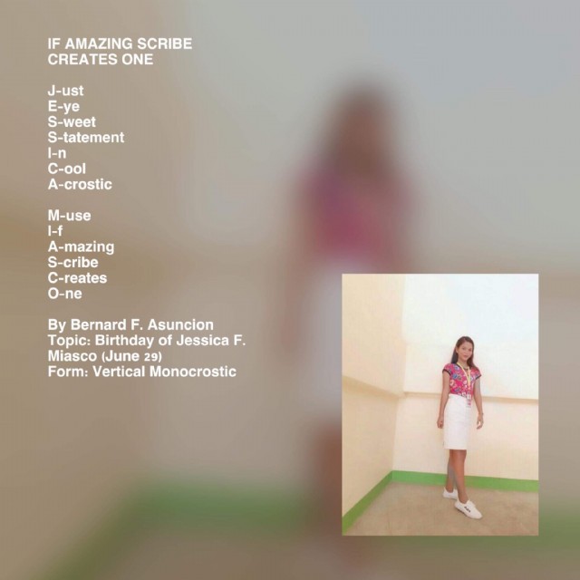 Topic: Birthday of Jessica F. Miasco (June 29)