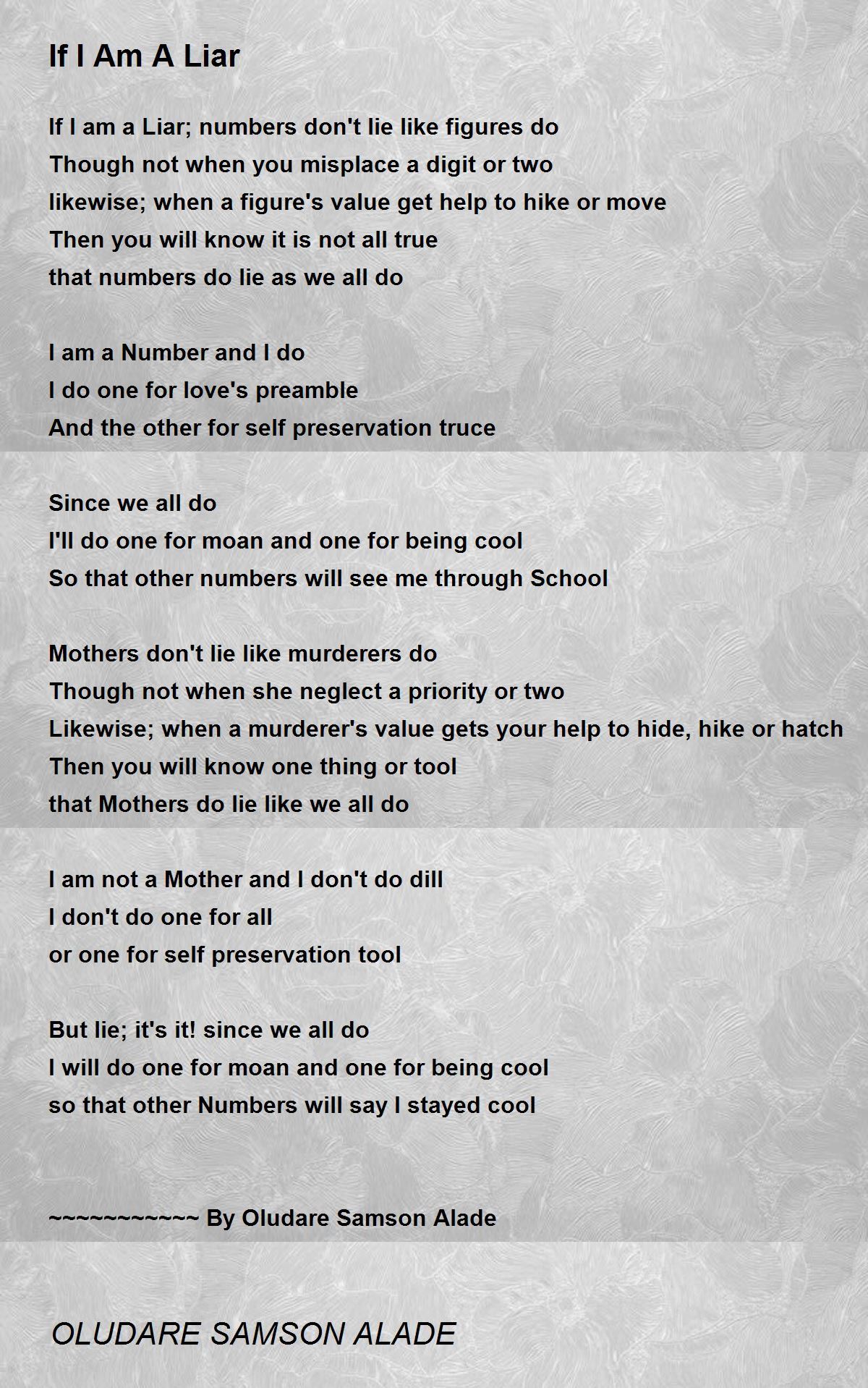 If I am a Liar; numbers don't lie like figures do