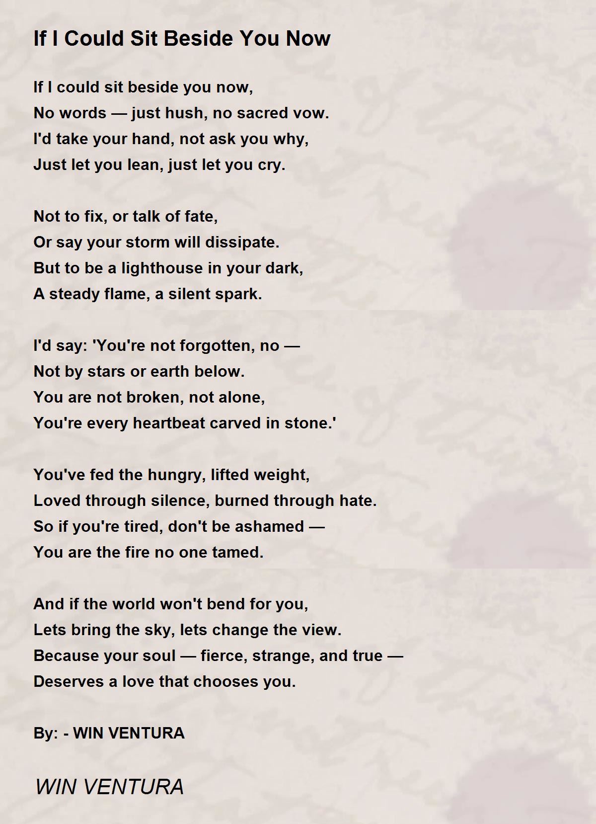 If I could sit beside you now,