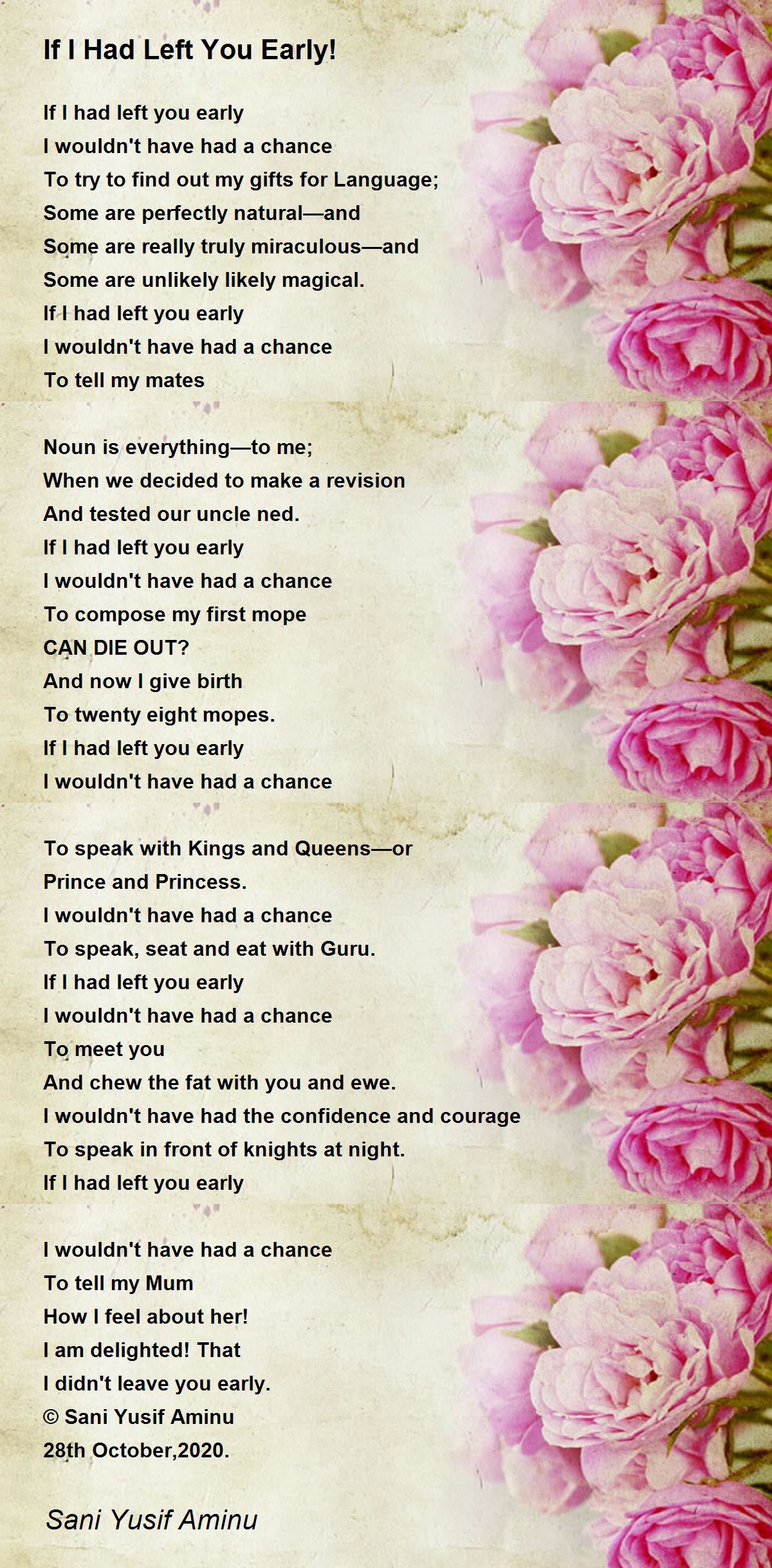 If I had left you early