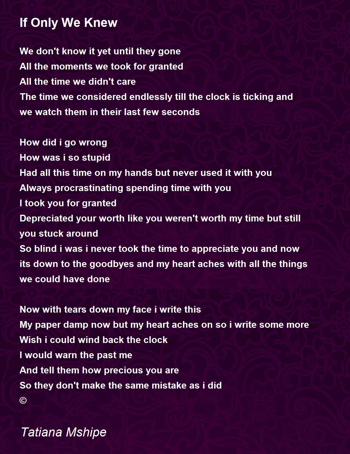 Now with tears down my face i write this