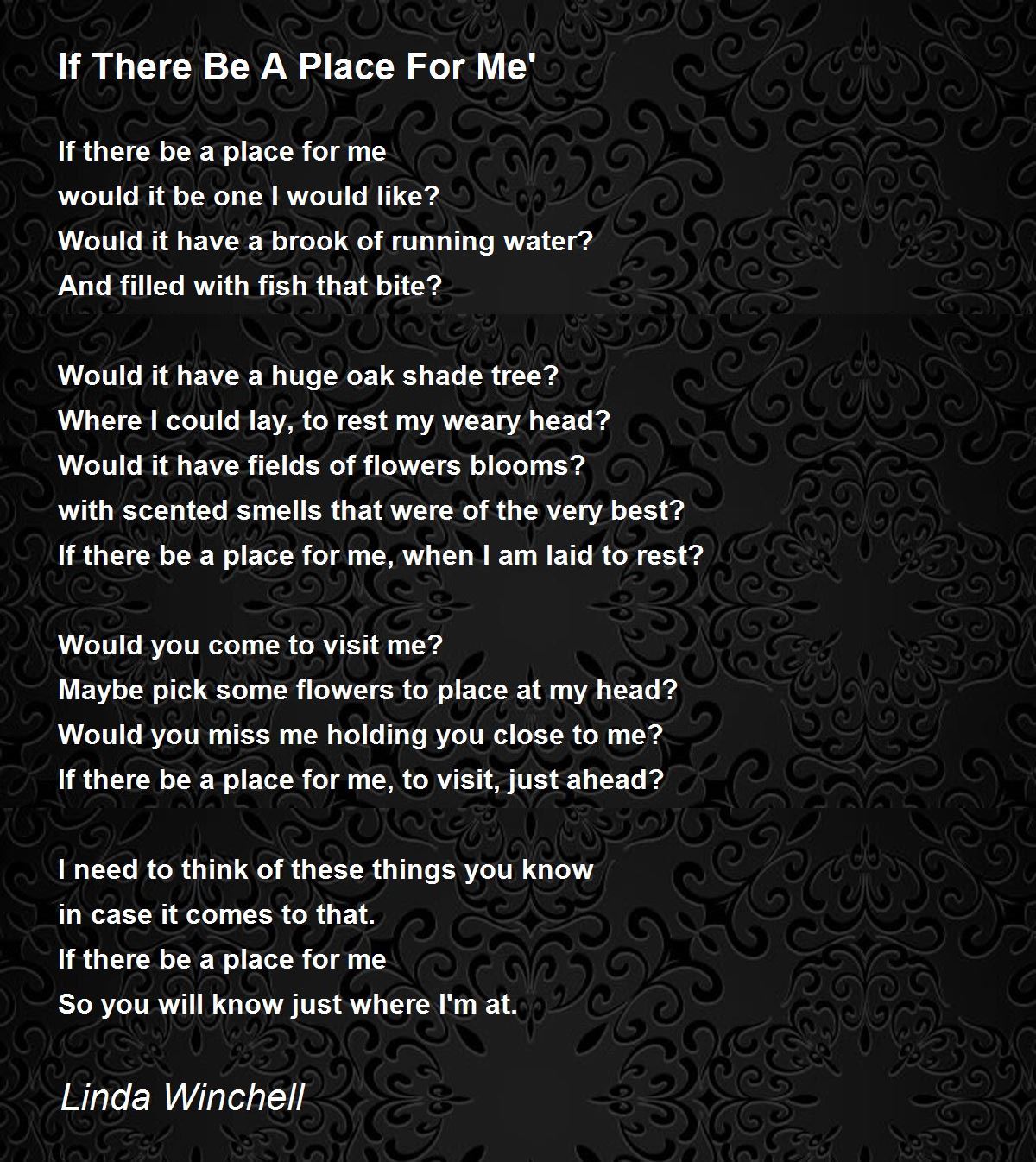 If there be a place for me, when I am laid to rest?