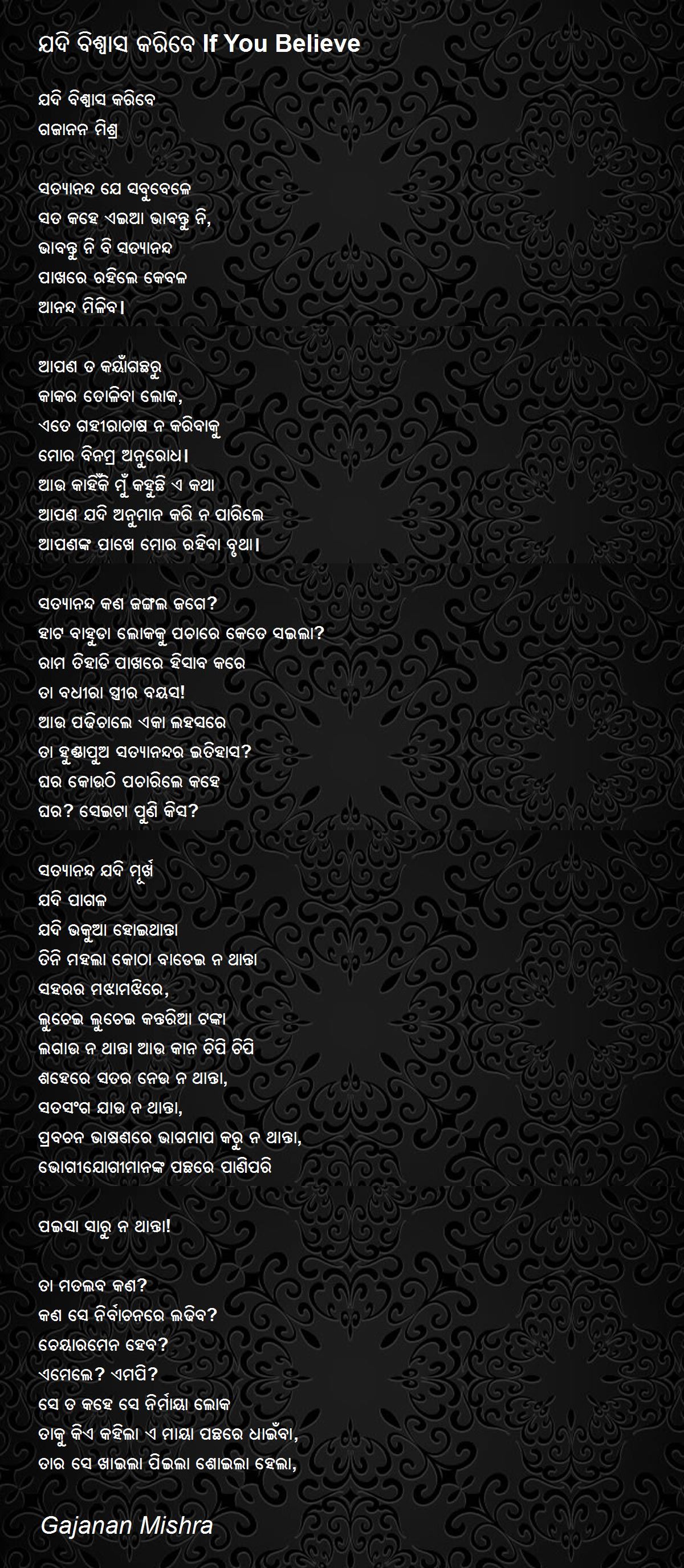 ମୋ କଥାକୁ ଯଦି ବିଶ୍ୱାସ କରିବେ ତ