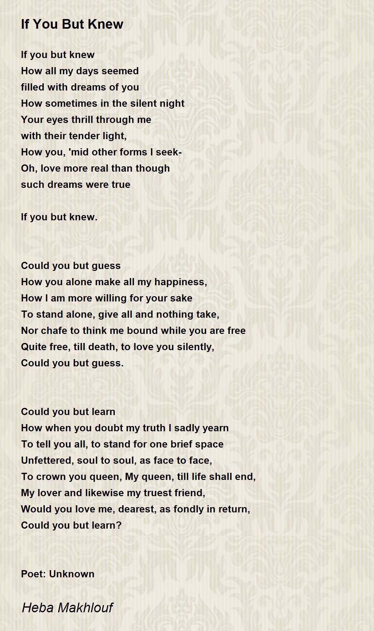 If you but knew