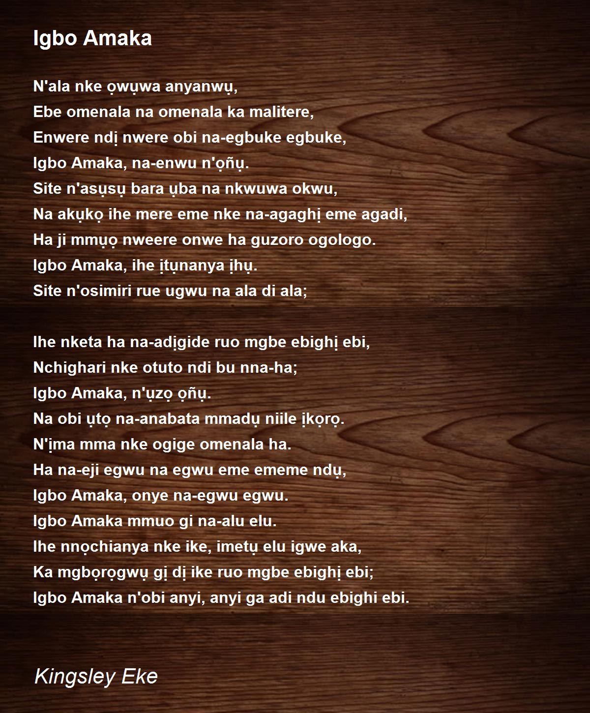 Igbo Amaka n'obi anyi, anyi ga adi ndu ebighi ebi.