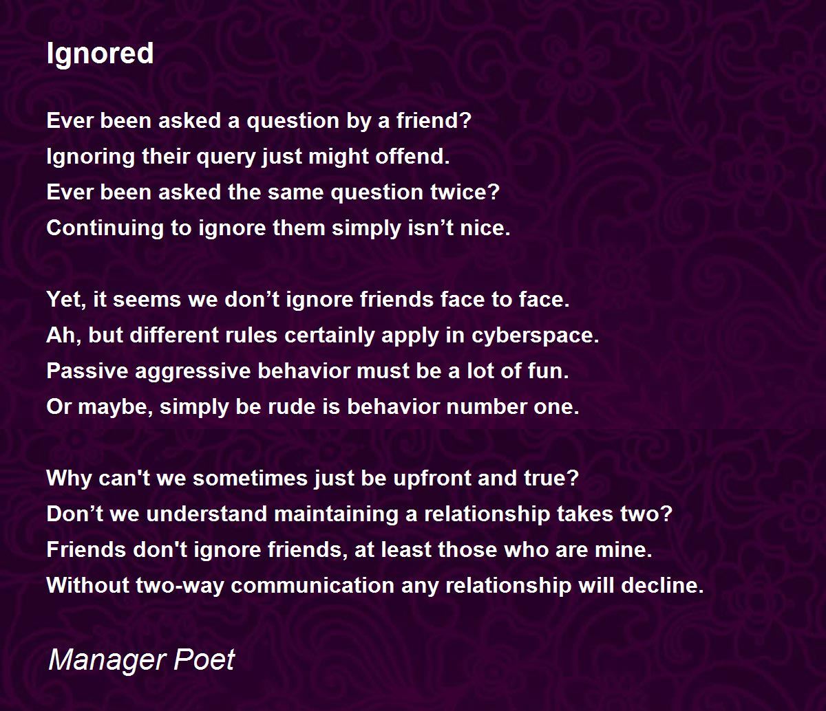 Friends don't ignore friends, at least those who are mine.