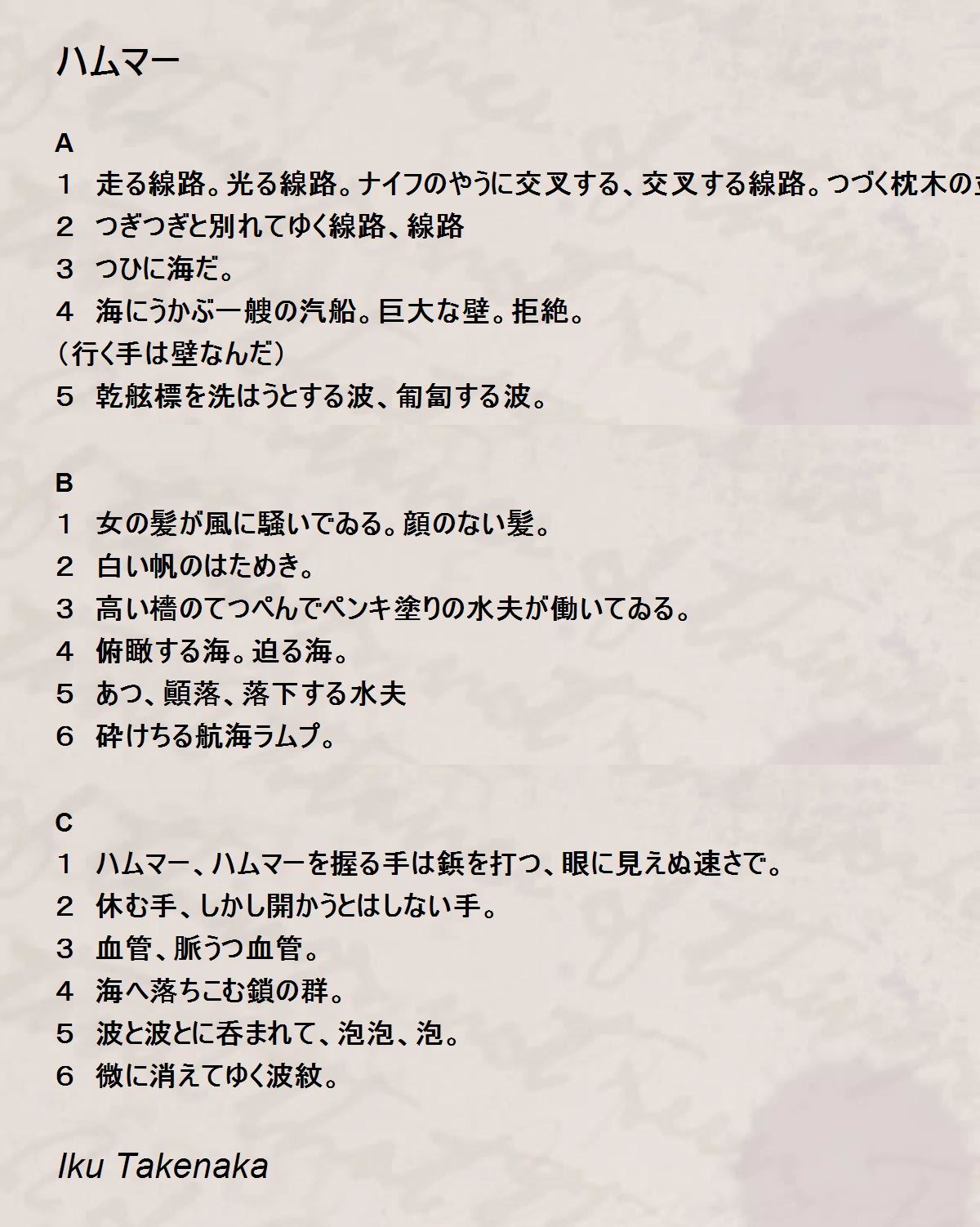 1 ハムマー、ハムマーを握る手は鋲を打つ、眼に見えぬ速さで。