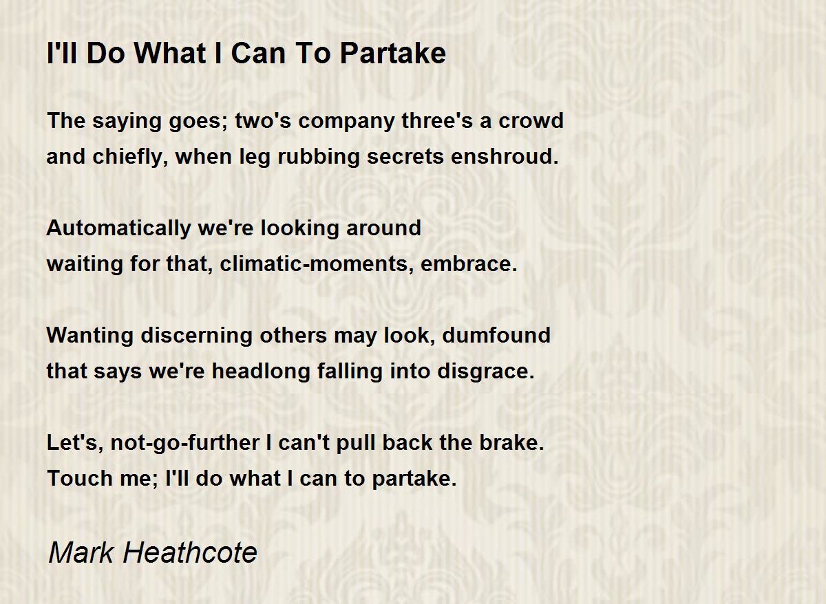 Touch me; I'll do what I can to partake.