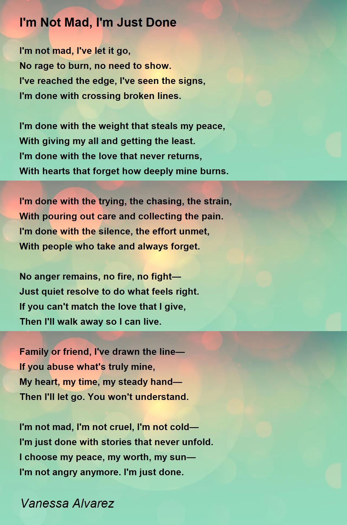 I'm done with the weight that steals my peace,