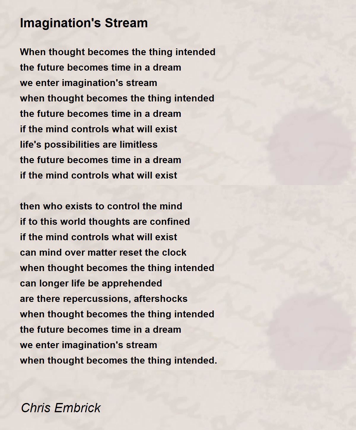 With power of imagination future becomes a dream. Mind matters a lot with dignified beauty and excellence is noted. An excellent poem is beautifully penned.10