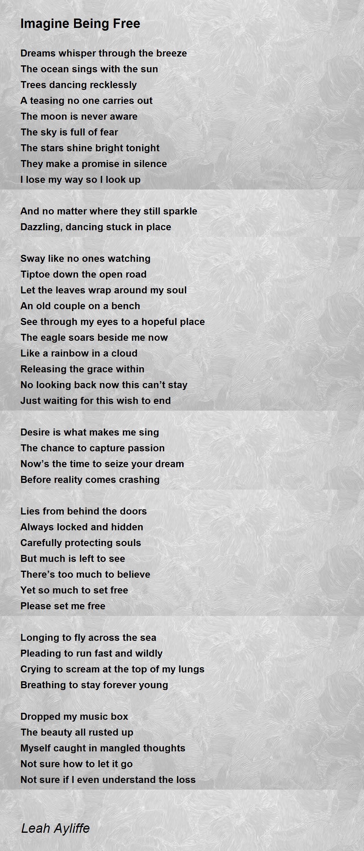 I wrote in one comment that FREEDOM was your central theme, that is, being free, acting out of freedom. Here is a poem written (I think I saw the year was 2008) when you were still dreaming about it, preparing yourself for it. What a precious document: you can see your future in that distant moment of the past. Well, eight years may NOT be that distant, but psychologically it marks a turning point: I see these three lines as being your commitment to LYRIC POETRY: TIME DOESN'T WAIT FOR ME/TIME DOESN'T CARE/SO I WILL LET MYSELF BE FREE. That moment is so important when you consciously choose the nature of your life. Not everyone does that: some do wait for time to push them, and as you realized, time is unreliable. So you pushed yourself into the World of Experience.