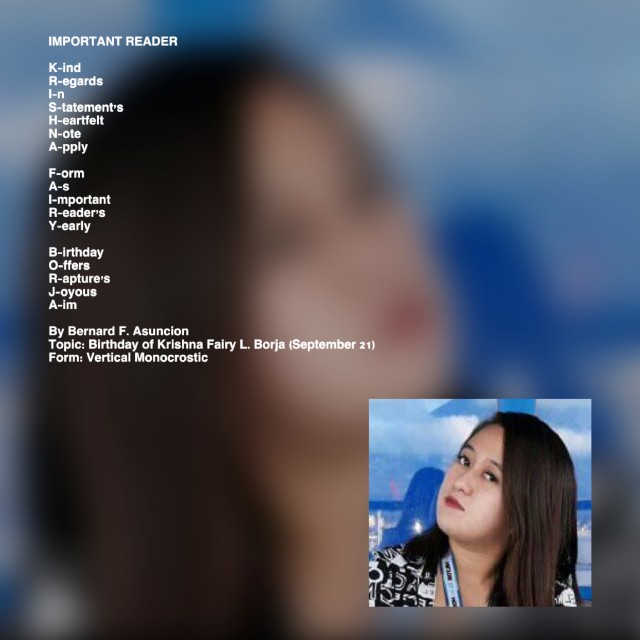 Topic: Birthday of Krishna Fairy L. Borja (September 21)
