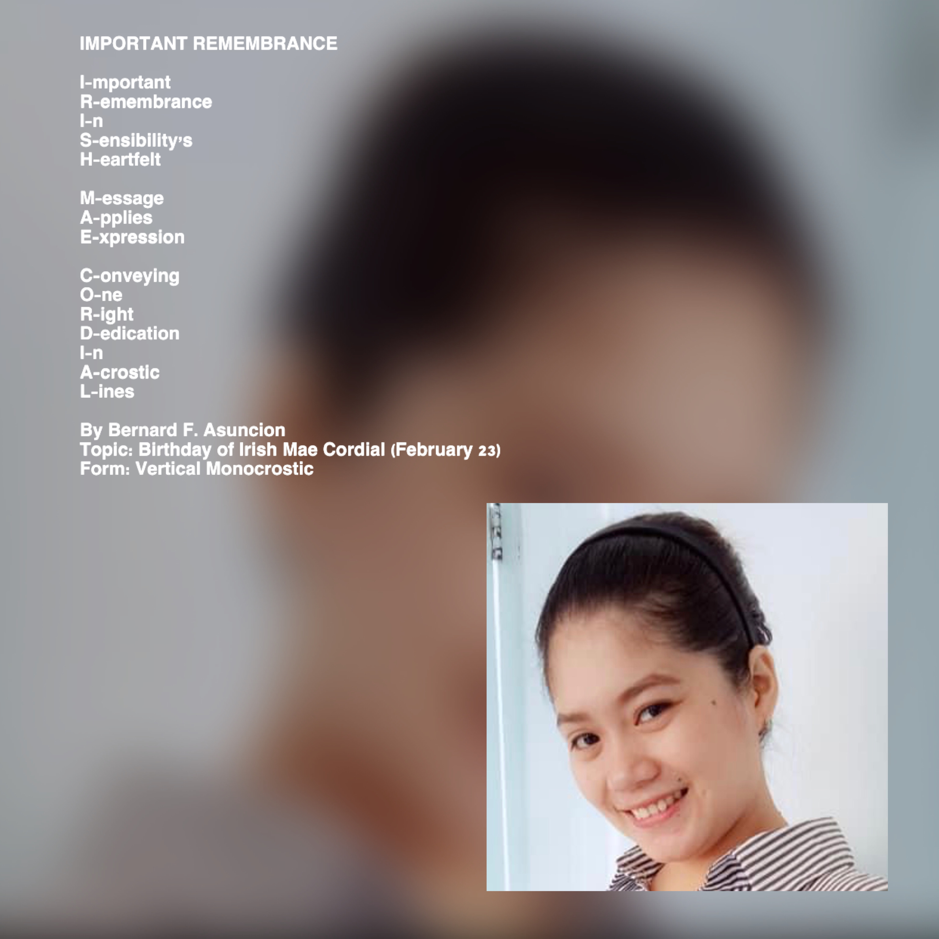 Topic: Birthday of Irish Mae Cordial (February 23)