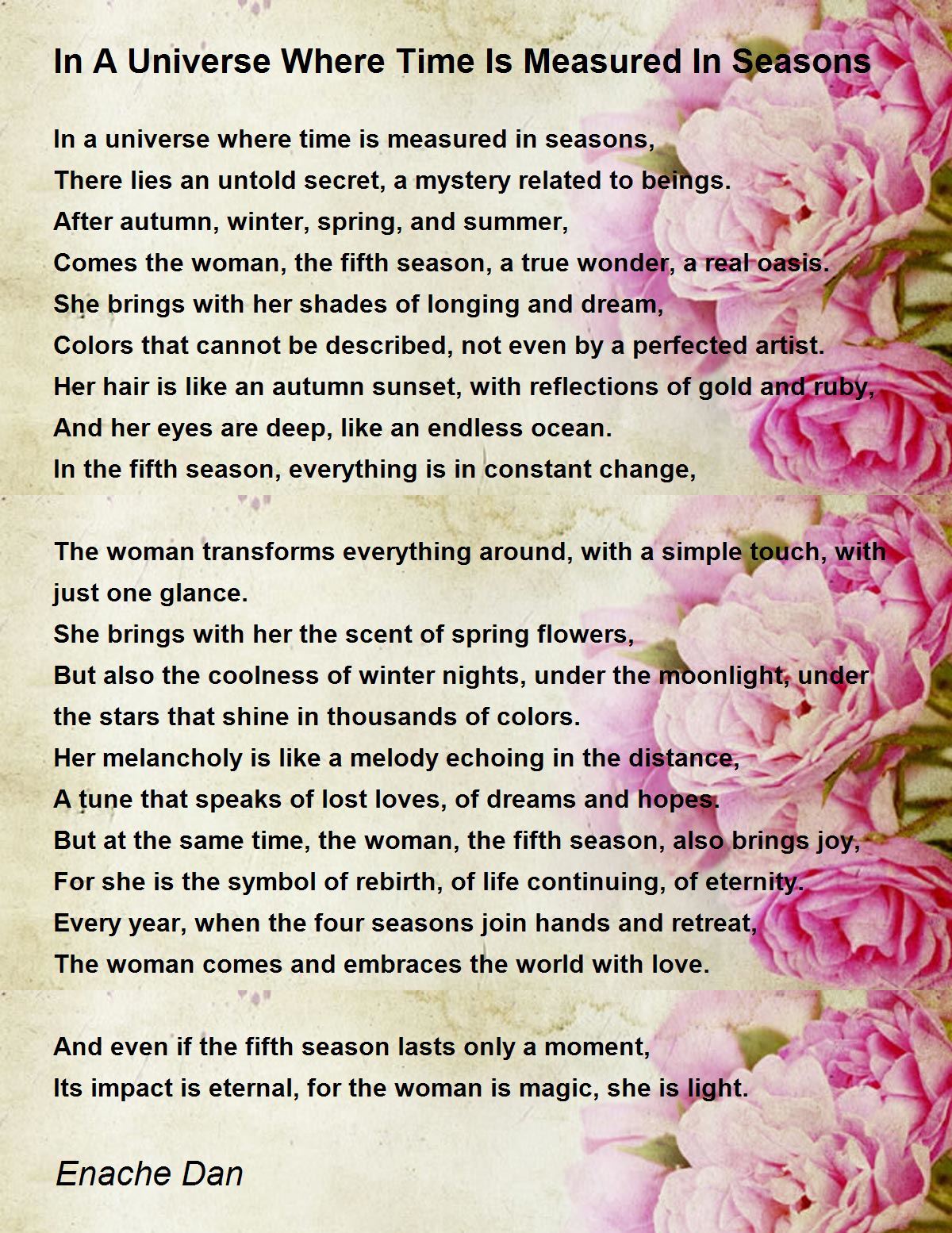 Comes the woman, the fifth season, a true wonder, a real oasis.