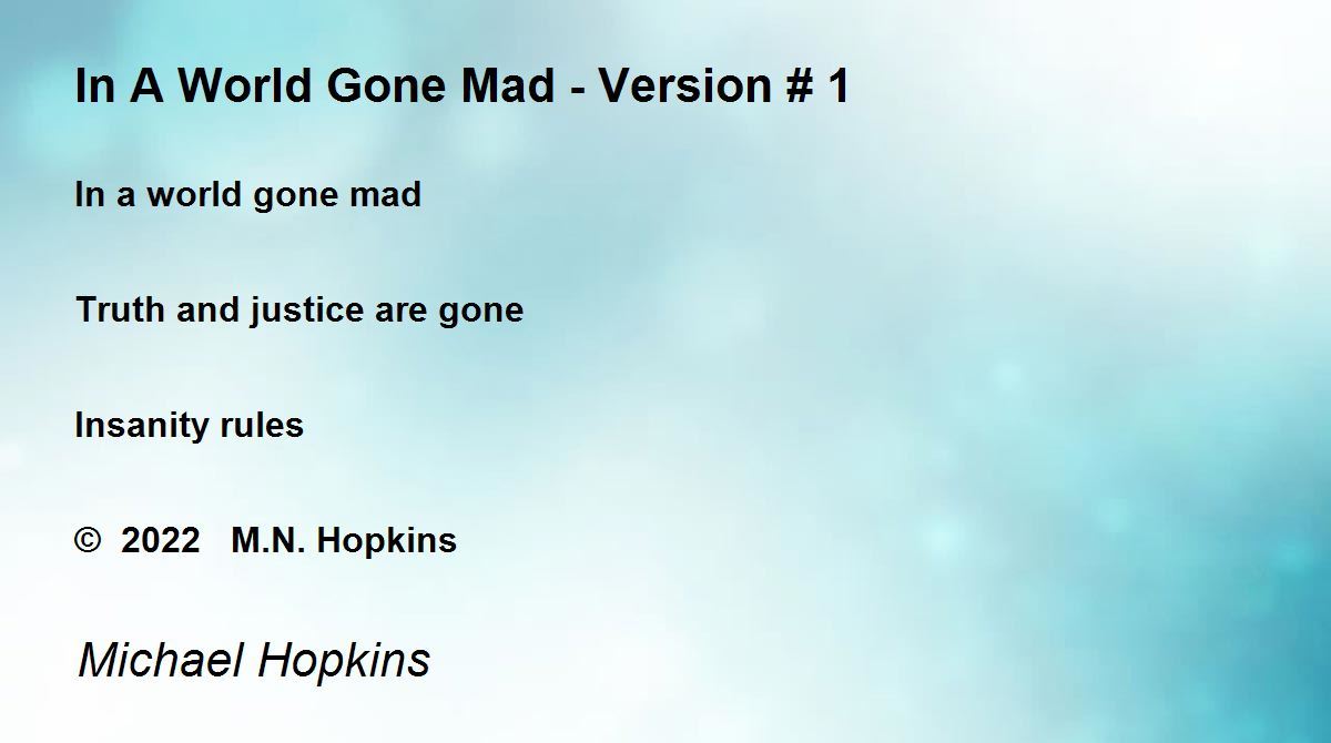 Note: I woke up in the very early morning yesterday with the words for Version # 1 in my head. I thought it is better to have a last verse that leads one towards a more positive resolution to the current state ofd affairs in our world. The endings for Version # 2 and 3 came to me shortly after this thought. I wrote these poems in the haiku style of poetry yesterday and published them for the first time today, the 2nd of April,2022.