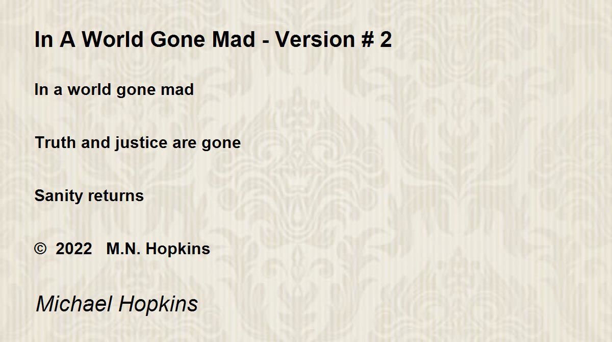 In A World Gone Mad - Version # 2 Poem by Michael Hopkins