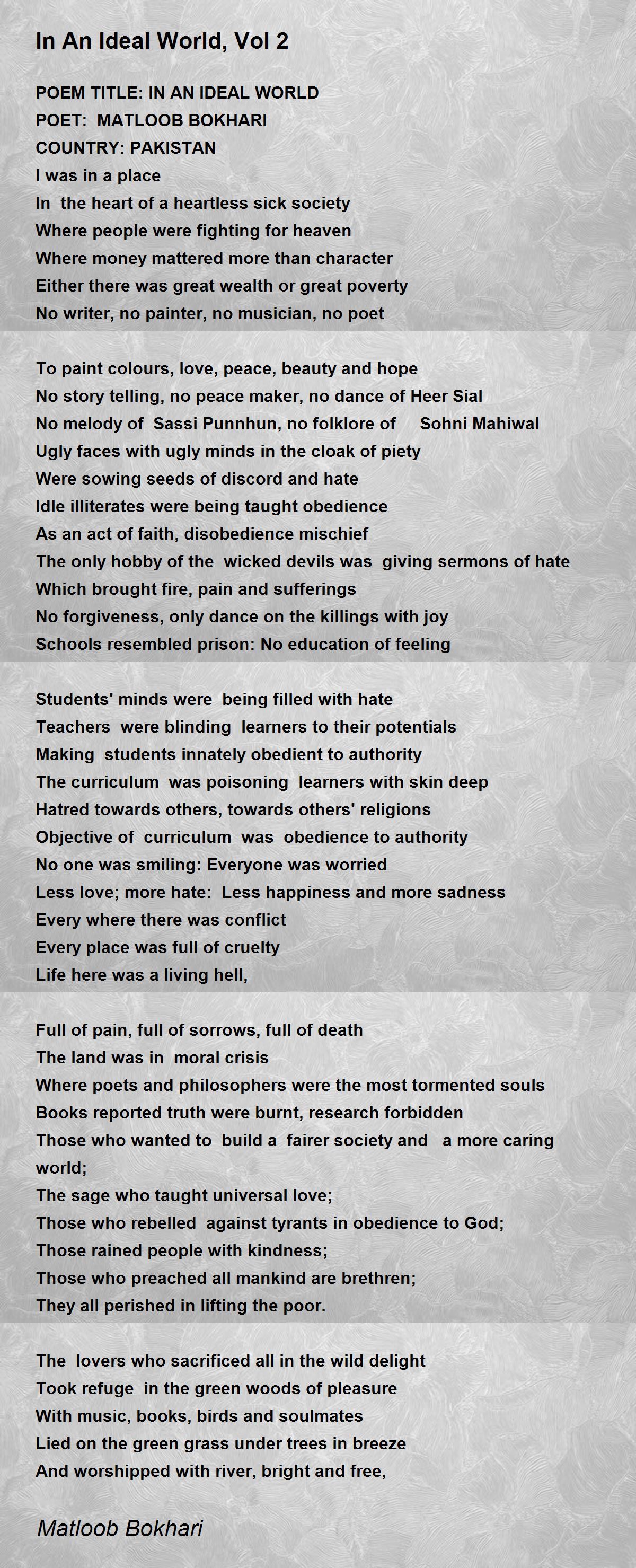 POEM TITLE: IN AN IDEAL WORLD