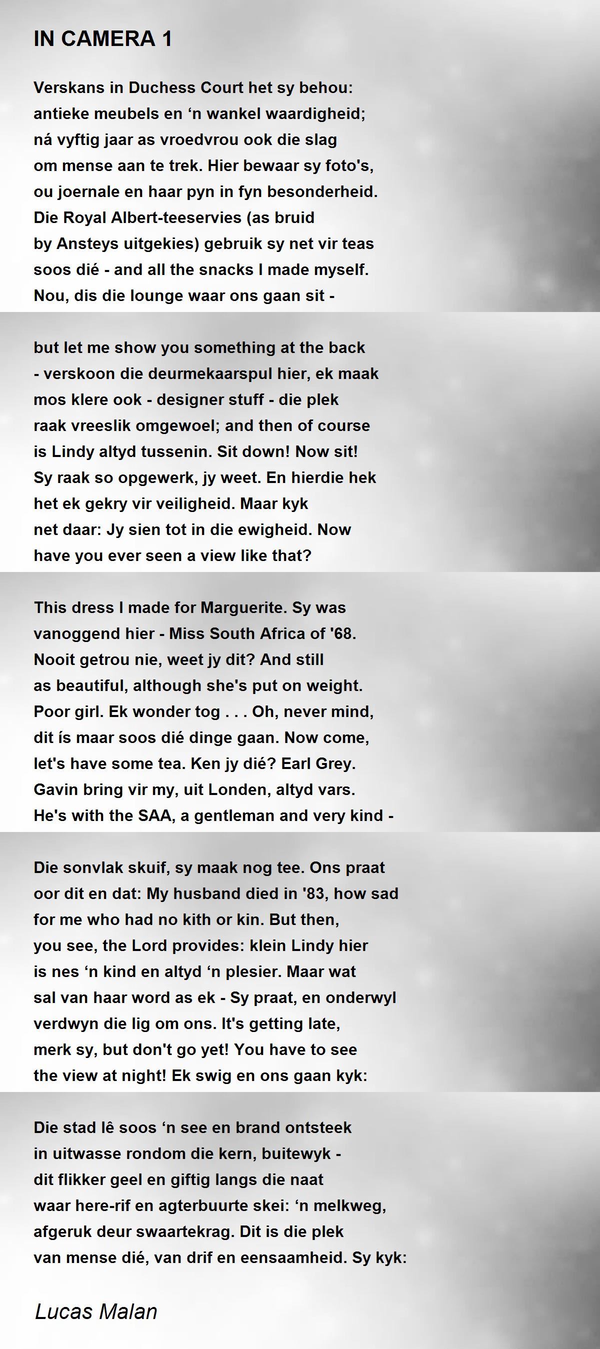 van mense dié, van drif en eensaamheid. Sy kyk: