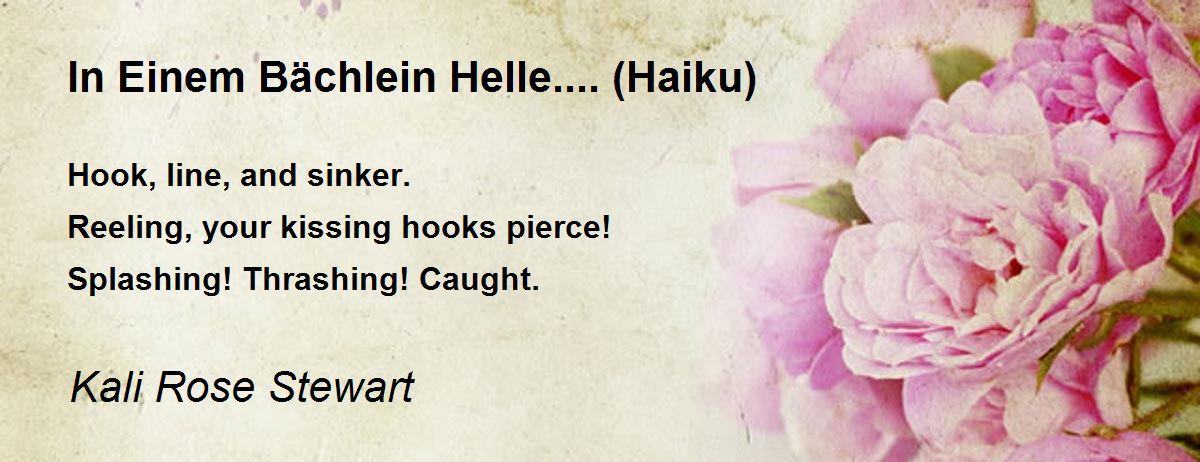 Hook, line, and sinker. Reeling, your kissing hooks pierce! Splashing! Thrashing! Caught.