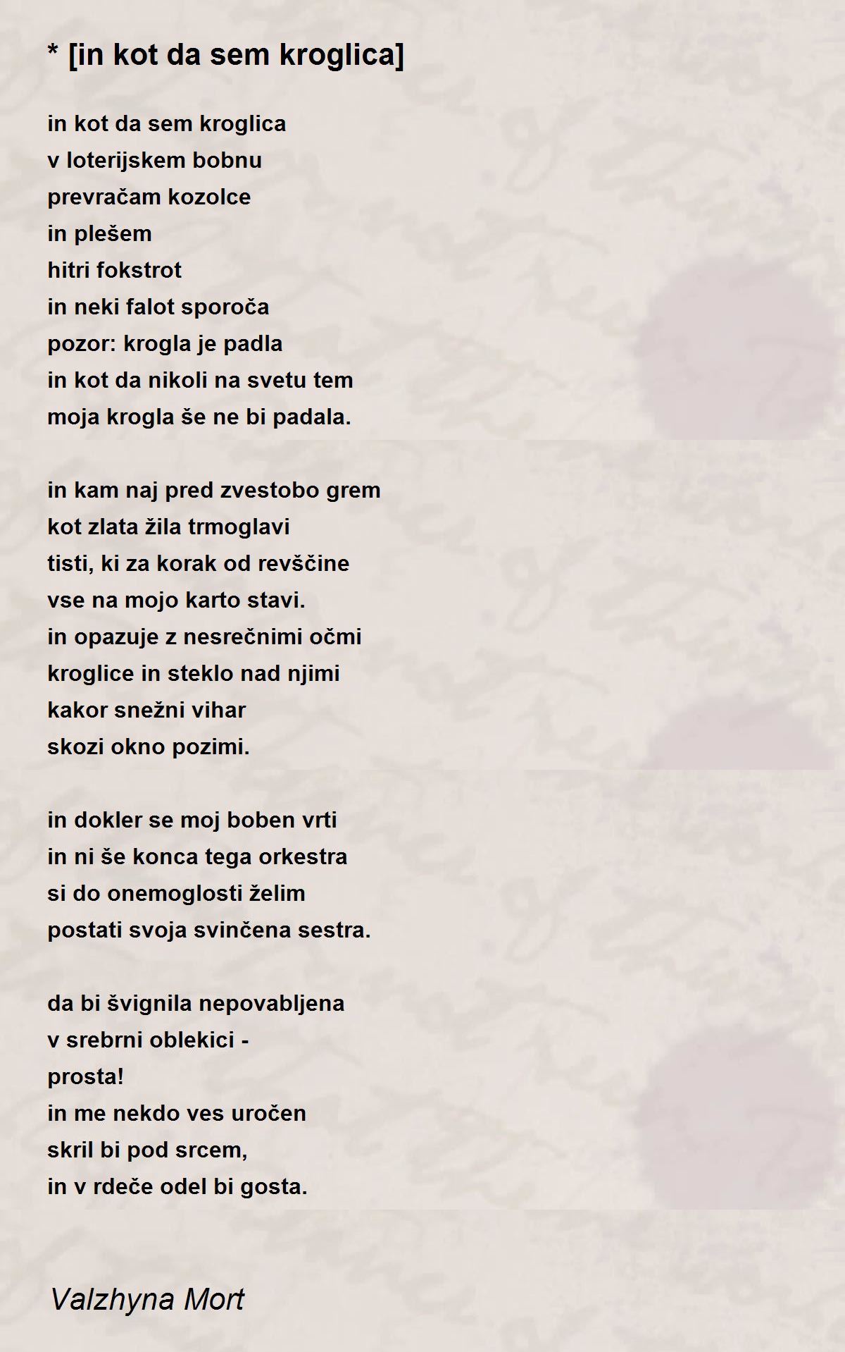 in kot da nikoli na svetu tem
